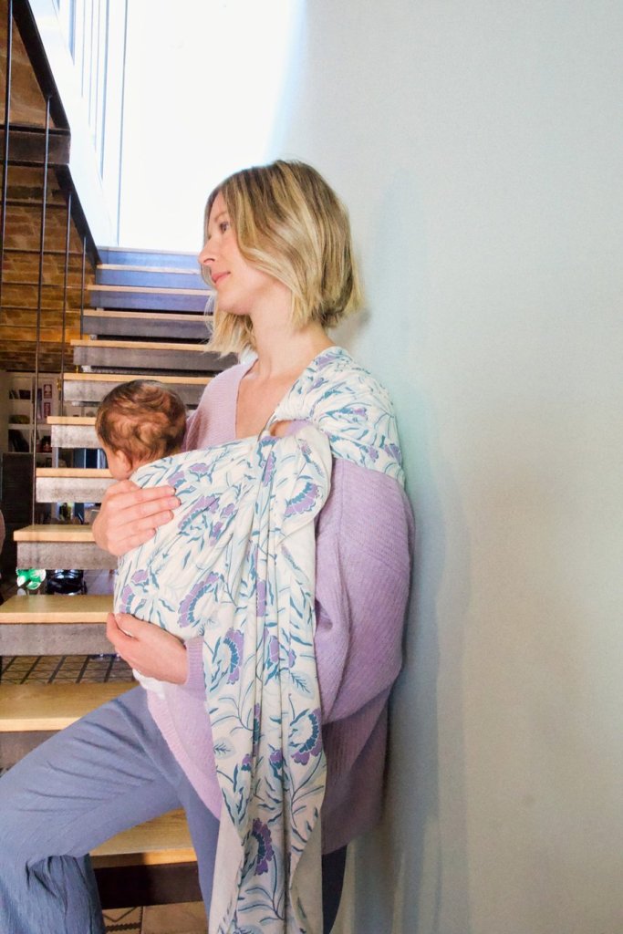 Autre objet / élément indispensable du post partum : une écharpe de portage (!!!!!) j’ai eu la mienne un mois après la naissance d’Eyden et clairement j’ai vu un avant et un après. Cette fois ci, elle ira directement dans la valise de maternité tant c’est un objet qui permet de prolonger cet état rassurant de la gestation pour bébé et qui permet à maman ou papa de vaquer à quelques occupations avec un bébé koala qui a besoin d’être porté.