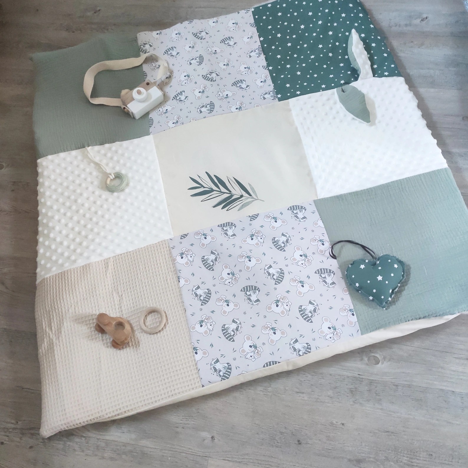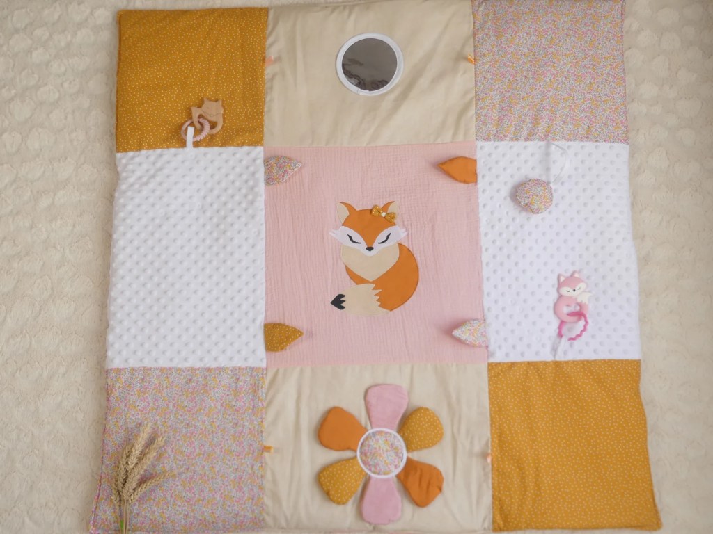 Finalement pas très utiles au départ et les premiers mois ! Un très joli tapis d’éveil (il y en a des supers sur Etsy), un hochet Montessori et quelques livres audios.