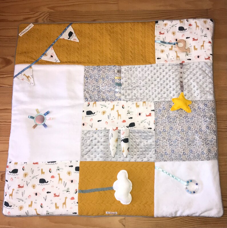 Autre élément important un tapis d’éveil pour que votre tout petit puisse évoluer au sol sereinement avant d’aller crapahuter partout. Un choix infini pour les bébés à venir s’offre à vous : fait main, personnalisé, aux couleurs pétantes ou à l’univers pastel …. En tout cas soyez certains que votre tout petit va passer du temps dessus ! Voici quelque uns de mes coups de coeurs il y en a pour tous les prix. Je trouve que personnalisé avec le prénom de bébé c’est un magnifique souvenir !