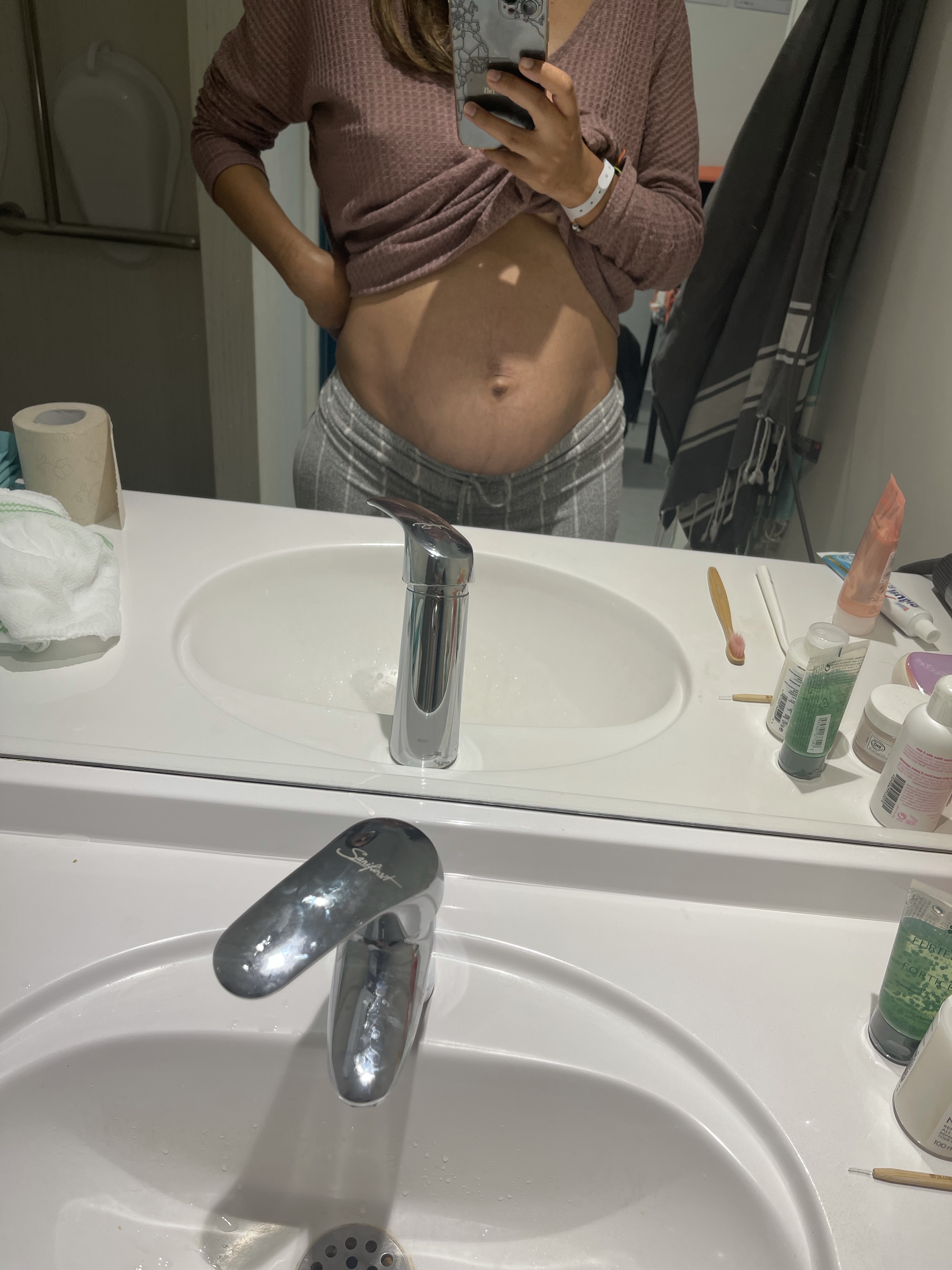 A J+14 je ne rentre pas dans mes jeans et j’ai fait l’exercice d’en essayer un juste avant de vous écrire pour « voir » mais sinon je me plais assez dans mes legging et pantalons à la taille élastique ! Mais vous savez quoi ? Quand je vois mon reflet, je souris, je me plais et surtout j’ai un aperçu de ce qu’était la Jihed d’avant les marques de la grossesse. Le ventre marqué de grandes traces brunes et d’une diastasis dont je ne m’étais pas du tout occupée à la suite de ma grossesse avec Eyden a laissé place à un petit bidou à peine marqué. Plus que ça, l’hydratation quotidienne et le soin apporté au bidou grandissant a, semble t il, réparé même les marques laissées il y a déjà 2 ans et c’est surtout ça que je voulais vous montrer. C est toujours difficile de s’afficher sous un angle vulnérable mais si je peux vous partager un peu d’espoir alors go!