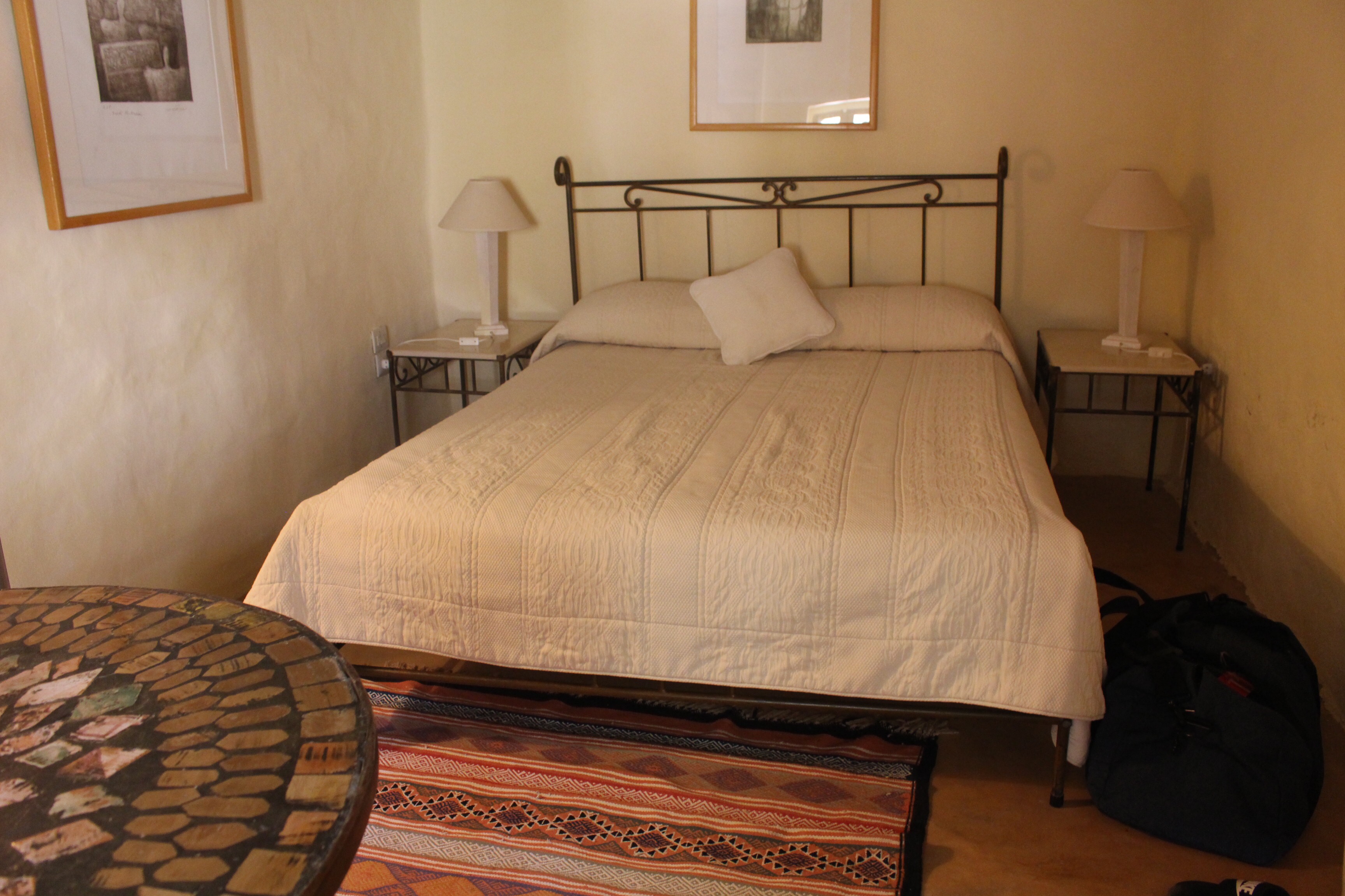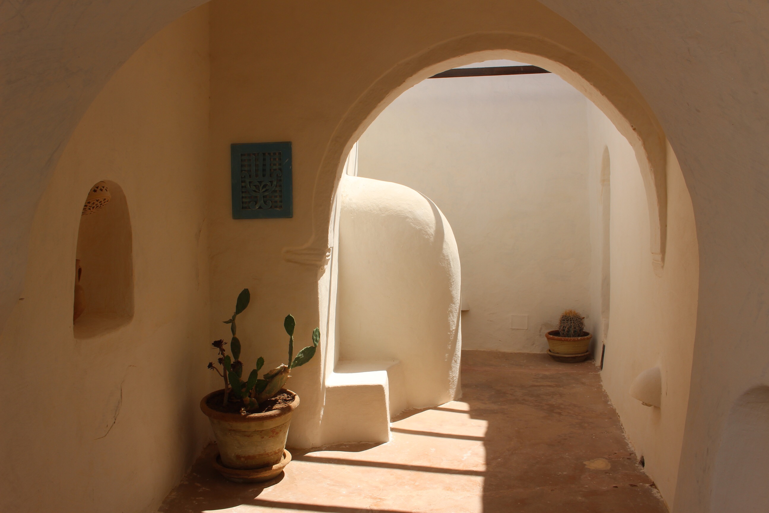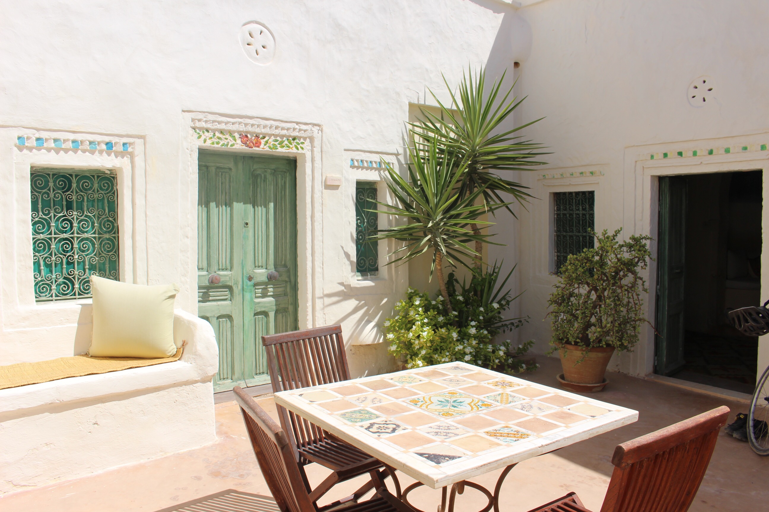 12h : On arrive enfin à l’hôtel à Dar Dhiafa en plein coeur du quartier de DjerbaHood (dont je vais vous parler plus tard). Je n’ai cessé de dire « waou » au fur et à mesure que j’avançais dans les petites pièces de cette maison d’hôtes/hôtel. Rien n’est laissé au hasard et tout est très beau. La décoration est choisie avec goût sans en faire trop. Le charme des 7 anciennes maisons qui composent Dar Dhiafa est conservé et tout est construit autour pour en faire un des endroits les plus charmants que j’ai jamais vu !
