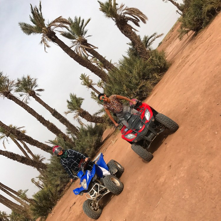 La encore, NEGOCIEZ ! On a pris un seul quad avec maman et on a réussi à avoir le tout à 35€ (mais je suis sure qu’il peut être encore moins cher) au lieu de 85€ proposés au Riad. Et le quad vaut vraiment le coup, 2H dans la palmeraie, photos, thé et les « waouuuuuu » de ma mère à chaque virage ! Ce sont certes de belles activités de gros touristes mais on peut se faire plaisir non et puis c’est pas comme si j’allais en faire en bas de chez moi….