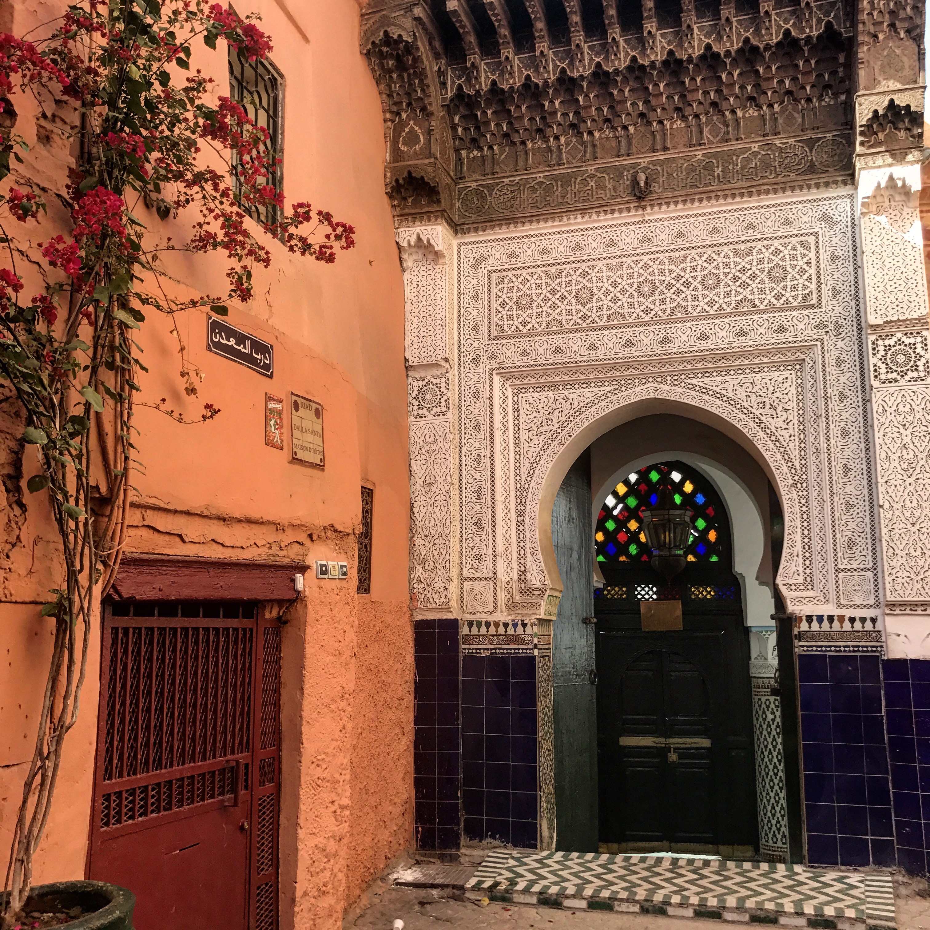 Vous voulez mon avis ? Je pense qu’il y a 10 fois mieux ! A part les déboires de la première nuit que je mets sur le compte de « on veut en gratter toujours plus des touristes », il faut avouer qu’on était confortablement installées. La chambre était propre, le Riad est nettoyé à fond tous les jours et les installations proposées correctes mais vraiment, il y a mieux. Tout d’abord l’emplacement laisse vraiment à désirer. Il est certes dans la Médina mais à une bonne vingtaine de minutes de marche pour atteindre le centre et se trouve dans un quartier plutôt populaire où les gens ne sont pas les plus accueillants et les enfants carrément désagréables. Ça limitait pas mal nos allers/retours surtout qu’aucun taxi ni tuktuk ne semblait connaître le Riad pour nous ramener le soir après une longue journée de marche.