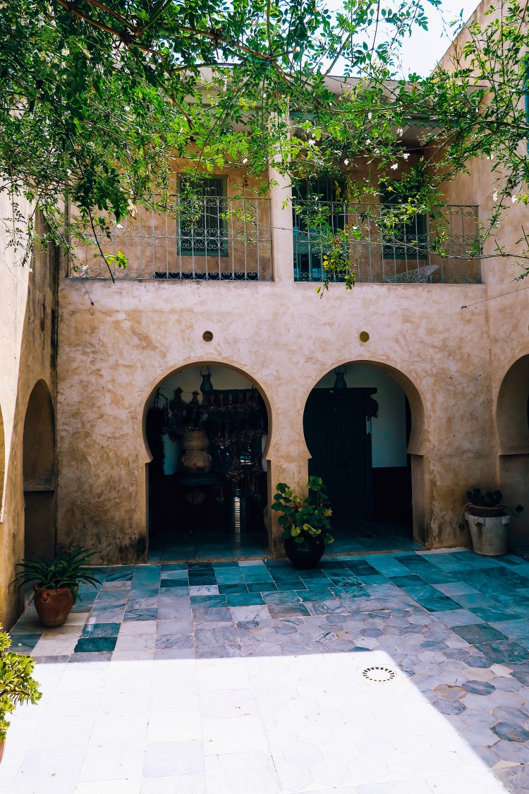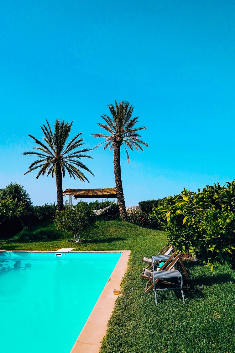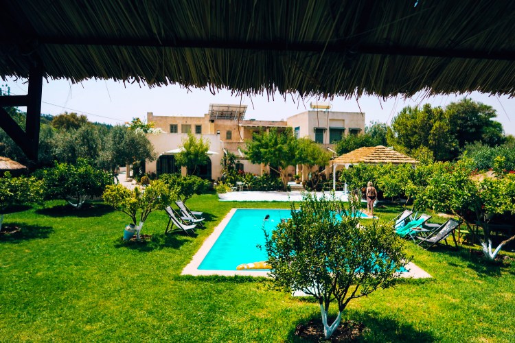C’est Patrick qui nous sauve en premier en nous envoyant chez son confrère, belge aussi, tout près de Bizerte. Une petite heure et demi de route depuis Hamamet, nous arrivons en plein milieu d’un terrain agricole, sur une route non goudronnée, bordée de part et d’autre d’oliviers. Au bout d’une allée, se dresse la maison. A première vue, on se croirait presque en Provence ! Le bruit des grillons, un jardin très vert, une belle piscine au milieu, pleins de petits coins pour profiter de l’extérieur et la maison qui se dresse au milieu : avec ses voutes et son balcon à la Zorro on a vraiment l’impression de pénétrer dans un autre monde !